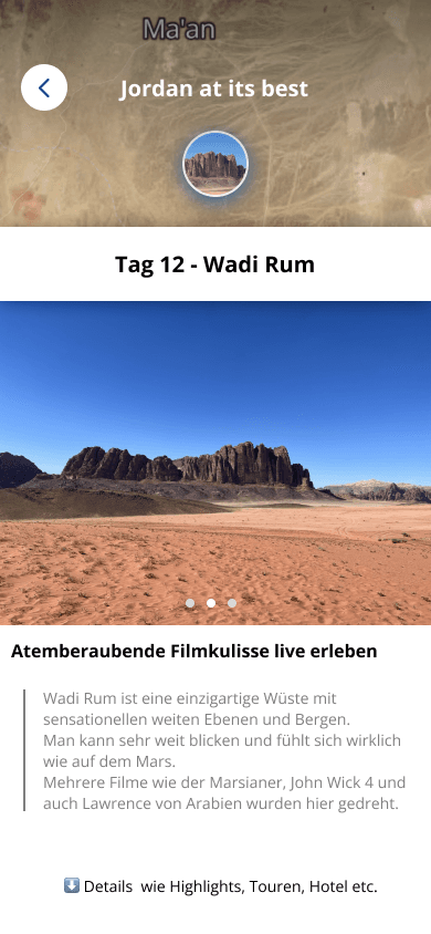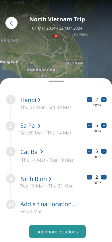 Choose your favorite trip from the feed and uncover where your friend stayed, how they reached top travel spots, and the activities they enjoyed the most. Embedded links simplify the booking process, and an integrated map provides a clear overview of your friend's journey.